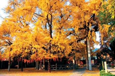 11月12日在日照市莒县浮来山风景区拍摄的3500岁树龄的银杏树。这棵老银杏树初冬时节树叶由绿变黄,满树的叶子在阳光的照射下泛着金黄,显得高贵美丽,煞是好看。