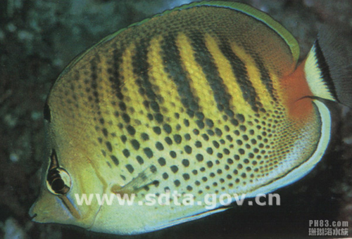 3、虎皮蝶:背侧具7条棕褐色横带,尾鳍中部有一新月形黑带,像老虎一般。它动作敏捷,喜欢啄长有长鳍的鱼。虎年出生的人是天生的领袖,魅力十足。属虎的08年遇事尽量冷静,随机应变方可无忧。