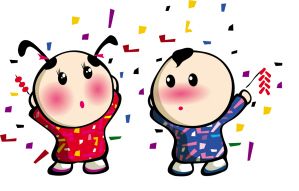 好客山东贺年会吉祥物为福福、乐乐,是有亲和力的山东男孩女孩的造型, 其亲切友好、憨态可掬的形象与落落大方的肢体语言体现山东的热情好客。