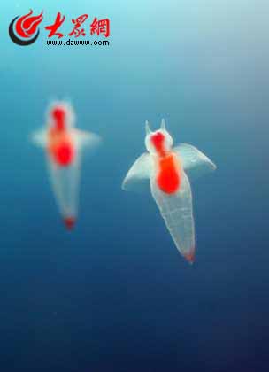 青岛海底世界负二精品展厅里貌如天使的“冰海小精灵”,又称“海天使”,是传说中的幸运之神。热恋中的情侣们看到她那颗火热的红心,可以为自己带来浪漫的爱情、美满的婚姻。情人节这天,情侣们面对“海天使”,可以现场共同书写“爱的宣言”,一起贴在许愿墙上。“身在海底爱你更深”,“海天使”们将见证情侣们的真挚的爱情。据介绍,"冰海小精灵"整体身长约二公分到三公分,为浮游软体动物。她雌雄同体,生活在北极、南极等寒冷海域的冰层之下。"冰海小精灵"通体透明,在水中冉冉飘动,像浮在半空中的天使,又被称作"海天使"、"冰之精灵"、"冰海精灵"等。之所以有如此雅称,是由于她们游动时拍动着透明的两翼,外型看似传说中的天使。而她们透明的身体中央有着红色的消化器官,看起来像一颗火热的红心。