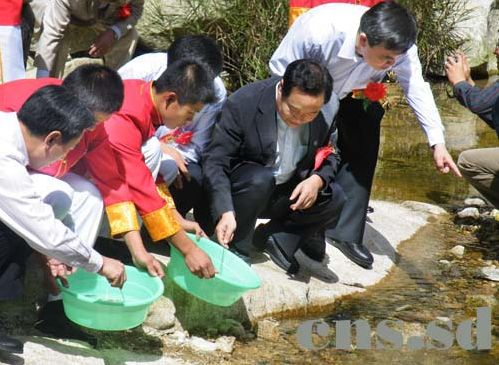 9月12日,泰山风景区管理委员会举行了泰山赤鳞鱼国家级水产种质资源保护区揭牌暨人工增殖放流启动仪式。