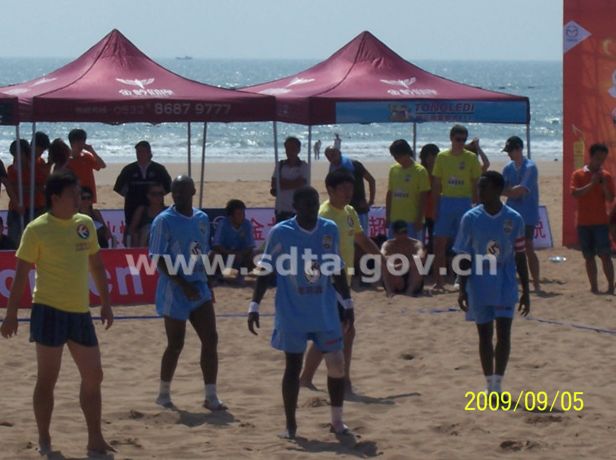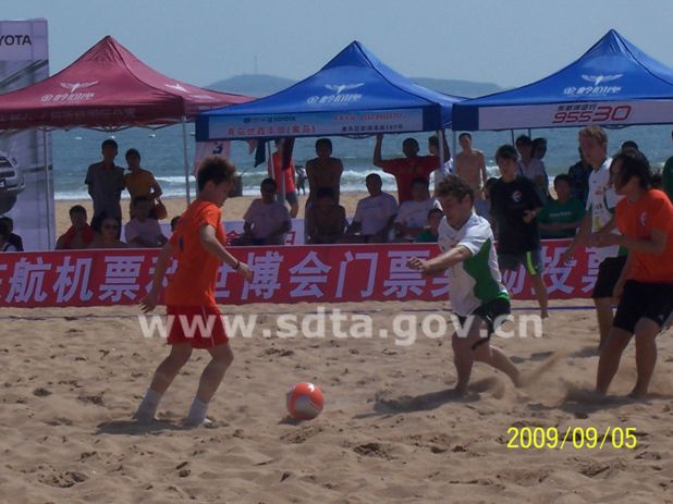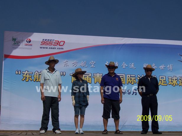 9月5日,由开发区旅游局和中国东方航空山东分公司联合主办的“东航杯”首届青岛国际沙滩足球邀请赛在金沙滩拉开帷幕,开发区政法委书记张建刚为球赛开球,团区委书记王艳、开发区旅游局副局长高存志出席开幕式并讲话。