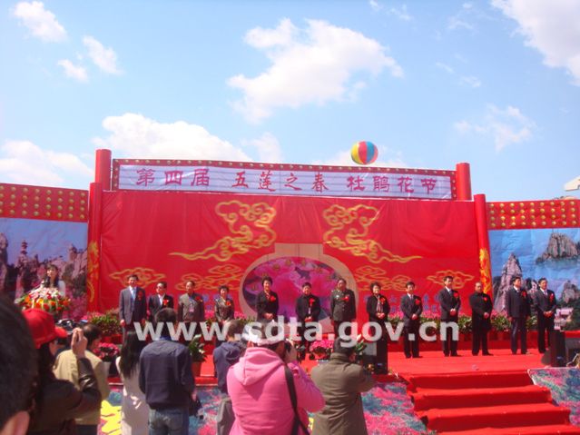 当日上午的开幕式上,五莲县人民政府县长杜江涛发表了热情洋溢的致辞。省旅游局巡视员祝利民在致辞中代表省旅游局对杜鹃花节开幕表示祝贺。她说,五莲县旅游资源丰富,是首批“山东省旅游强县”,希望五莲借助杜鹃花节平台,进一步打响生态旅游品牌,为全省旅游业发展做出更大的贡献。中国花卉协会杜鹃花分会也专门发来了贺信。喜庆的礼炮声中,日照市委常委政法委书记黄金华宣布第四届“五莲之春”杜鹃花节开幕。