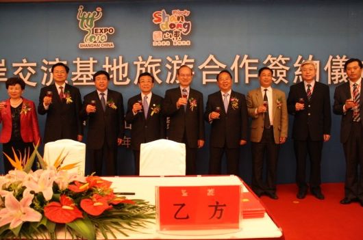 签约仪式前,两地旅行社代表分别考察了枣庄冠世榴园、青檀寺、台儿庄大战纪念馆、台儿庄古城一期、滕州微山湖湿地等主要景区,并与台湾国民党荣誉主席连战等一起,见证了象征海峡两岸同胞祈盼祖国统一美好愿望的台儿庄古城核心区标志性建筑——泰和楼的奠基仪式。