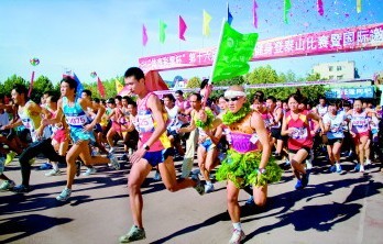 9月6日上午,山东农业大学东校区操场上彩旗招展,热闹非凡。第25届泰山国际旅游文化登山节的重要活动——“体育彩票杯”第16届全国全民健身登泰山比赛暨国际邀请赛、“泰山啤酒杯”“泰山冠军”中国·泰山登山系列大奖赛2011年度总决赛、“宝龙杯”环泰山万人健身跑在这里起跑。8时40分,国家体育总局登山运动管理中心副主任、中国登山协会副主席颜金安,市委书记、市人大常委会主任杨鲁豫共同打响了发令枪。伴随着清脆的发令枪响,全场欢声雷动,参加比赛的运动员们如离弦之箭向前冲去,展开了一场速度与耐力的激烈角逐。