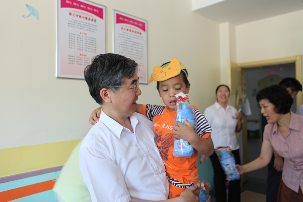 省委宣传部副部长、省文化厅厅长徐向红(左二)一行到济南市儿童福利院看望孩子们