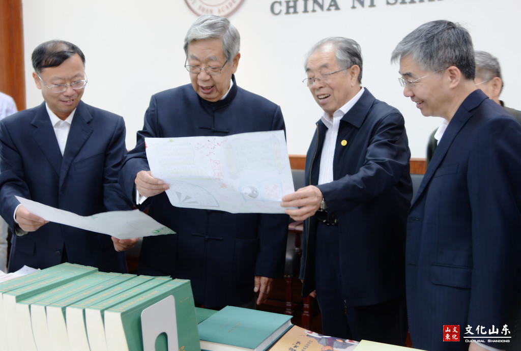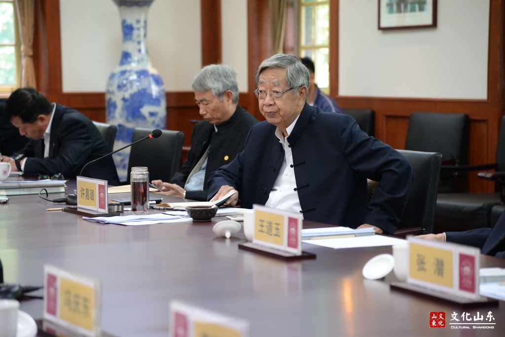 座谈会上,许嘉璐先生听取了“图书馆+书院”模式推进和尼山书院建设情况、儒学人才高地建设情况以及山东省图书馆“大师引进工程”进展情况等汇报,对山东弘扬优秀传统文化的创新实践给予充分肯定。他指出,文化建设工作一定要和人民群众紧密结合,一定要扎根落实到群众中去。山东有着丰厚的文化资源,在弘扬优秀传统文化与时代精神相结合、创造新时期辉煌文化等方面要成为全国的领头雁。要加快推进尼山书院联盟建立,在此基础上推动与互联网的结合,使图书馆在功能上得到进一步拓展;图书馆要关注并加强与非物质文化遗产的结合,让本就根植于老百姓的东西切实走进群众的现代生活;要加强学术人才培养,加强尼山书院、乡村儒学师资队伍建设,争取多出人才、多出成果。许嘉璐副委员长强调,在文化建设方面第一要有顶层设计,第二要做广泛调研,第三要有典型。