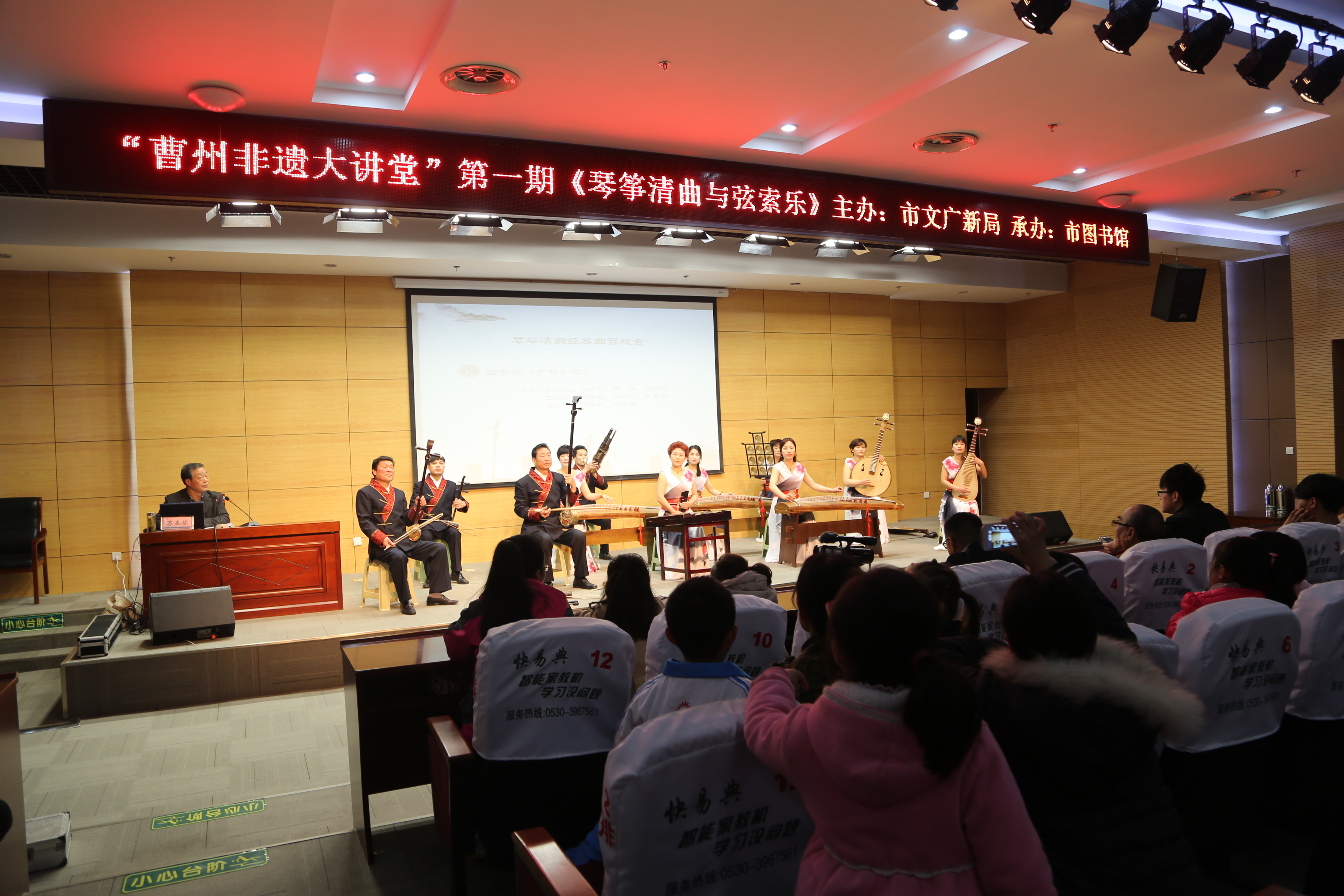 为更好地保护和传承菏泽市非物质文化遗产, 2015年4月,在“曹州大讲堂”的基础上,开办了“曹州非遗大讲堂”。 “曹州非遗大讲堂” 邀请市、县非遗项目保护单位负责人或非遗代表性传承人担任嘉宾,对我市的民间文学、传统音乐、传统舞蹈、传统戏剧、曲艺、传统体育、游艺与杂技、传统美术、传统技艺、传统医药、民俗等十大门类非遗项目轮流进行专题讲座。既让群众更加了解菏泽非物质文化遗产的魅力,又让广大群众在寓教于乐中增强对非物质文化遗产的认识,了解了菏泽的悠久历史和丰厚的文化底蕴,在全社会营造保护非物质文化遗产的良好氛围,彰显菏泽非物质文化遗产特色。