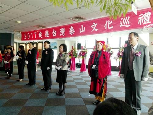 近日,“2017走进台湾——泰山文化系列巡展”在高雄85大楼隆重开幕。中国国民党中央评议委员王素惠、台湾文化产经交流促进会理事长张丽珍、中华张天师道统发展协会理事长彭天贵等贵宾以及来自台湾各地信众代表约300余人参加了开幕式。