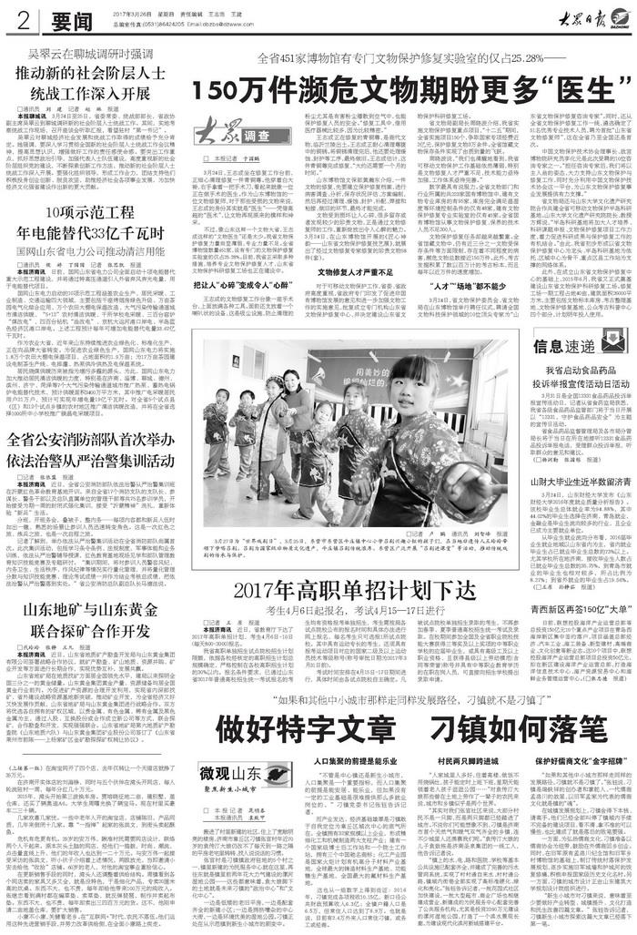 不过,像山东这样一个文物大省,王志成这样的“文物医生”还是太少。我省文物保护修复力量尚显薄弱,专业力量不足。全省博物馆数量451家,设有专门的文物保护修复实验室的仅占25.28%。目前,我省正采取多种措施,培养专业文物保护修复人才,山东省文物保护科研修复工场也正在建设中。