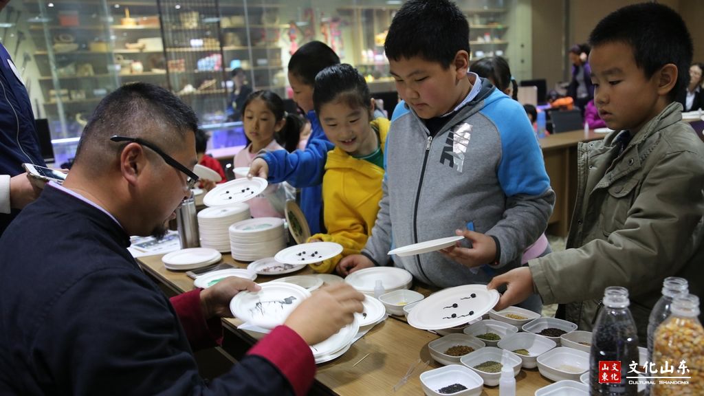 4月8日,非物质文化遗产东明粮画走进了“山东非遗传习大课堂”。菏泽市非物质文化遗产东明粮画的传承人韩国瑞,给现场30多位小朋友讲解东明粮画的制作技艺,揭秘种子作画的“秘密”。