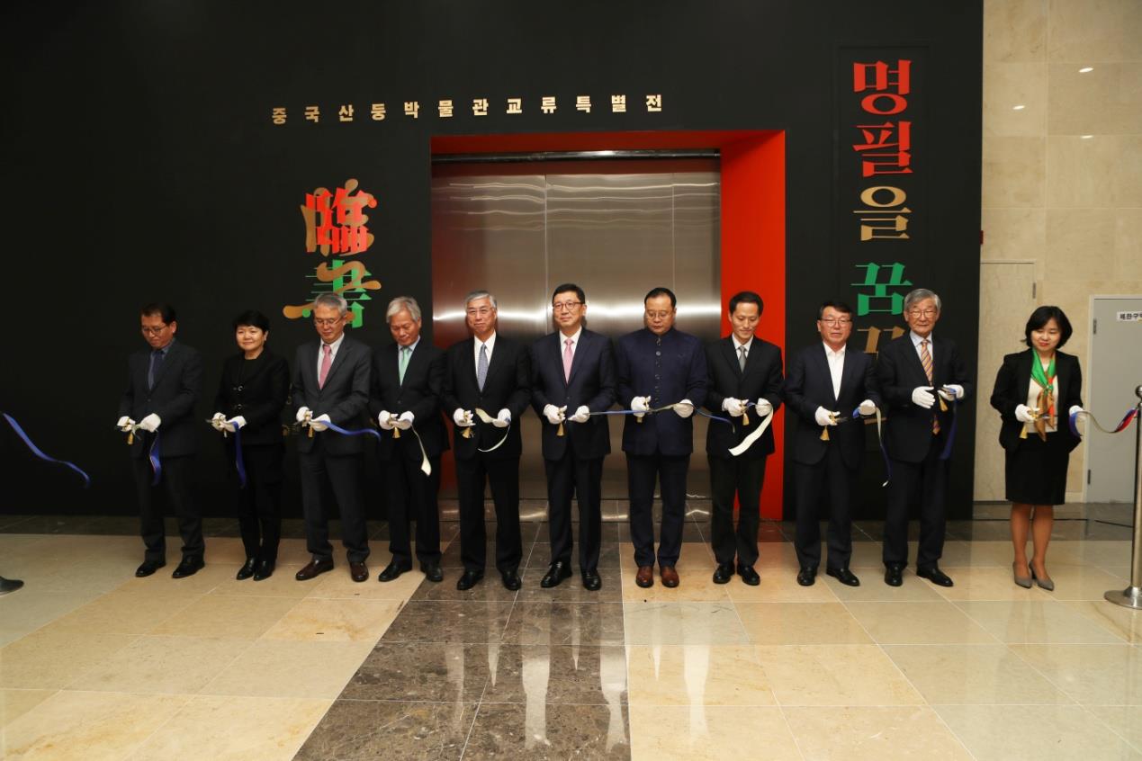 中华人民共和国驻韩国大使邱国洪、文化参赞张中华、山东博物馆副馆长卢朝辉、韩国文化体育观光部文化艺术政策室室长李宇盛、韩国国立韩古尔博物馆馆长朴荣国等出席开幕式。