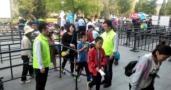 倾力打造优质高效服务。为方便游客购票,景区23个售票窗口及景区出入园通道全部开启,延长景区售检票时间,加大了网络售票推广力度,多种方式缓解游客购票压力。做好假期客流高峰应对准备,按照“三孔”景区最大承载量要求,实行旅游高峰时段控制,科学安排工作人员加强值班值守,布设购票、检票硬隔离护栏600余米,重新张贴景区部分台阶防滑条和安全提示标语、公告,及时做好客流引导。强化门禁安检管理、物品查验,及时发现并制止各类危险品和违禁物品进入景区。