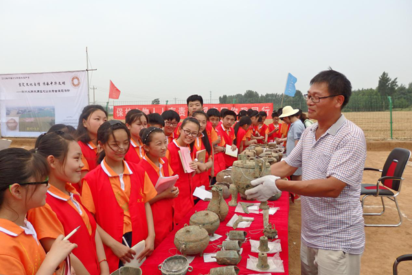 今年6月9日是我国第二个文化和自然遗产日。为切实开展2018年“文化和自然遗产日”活动,让公众对考古文博工作加深认知理解,探索公众考古开展新思路,6月8日,由山东省文物考古研究院、枣庄市文广新局、文物局主办,滕州市文广新局、滕州市文物局、滕州市教育局、滕州市官桥中学、大韩村考古工地考古队承办的“枣庄市2018年文化和自然遗产日公众考古活动”在滕州大韩村考古发掘工地隆重举行。