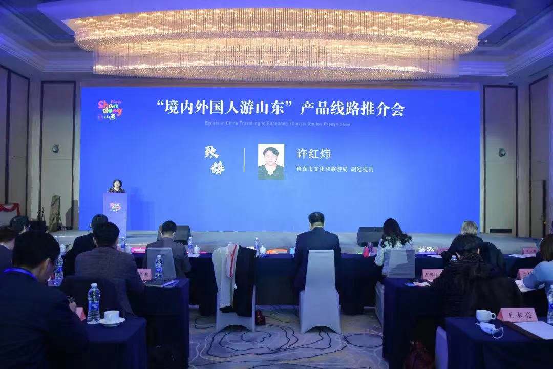 2020年12月18日,“境内外国人游山东”产品线路推介会在青岛成功举办,活动通过整合省内景区、酒店、旅行社、演艺等资源,推出针对在华外国人的专项旅游产品。本次活动以“境内外国人游山东”为主题,将产品线路推介、文艺演出、展演洽谈、线上直播结合在一起,进一步提升了山东文化旅游在入境旅游市场的知名度和影响力。