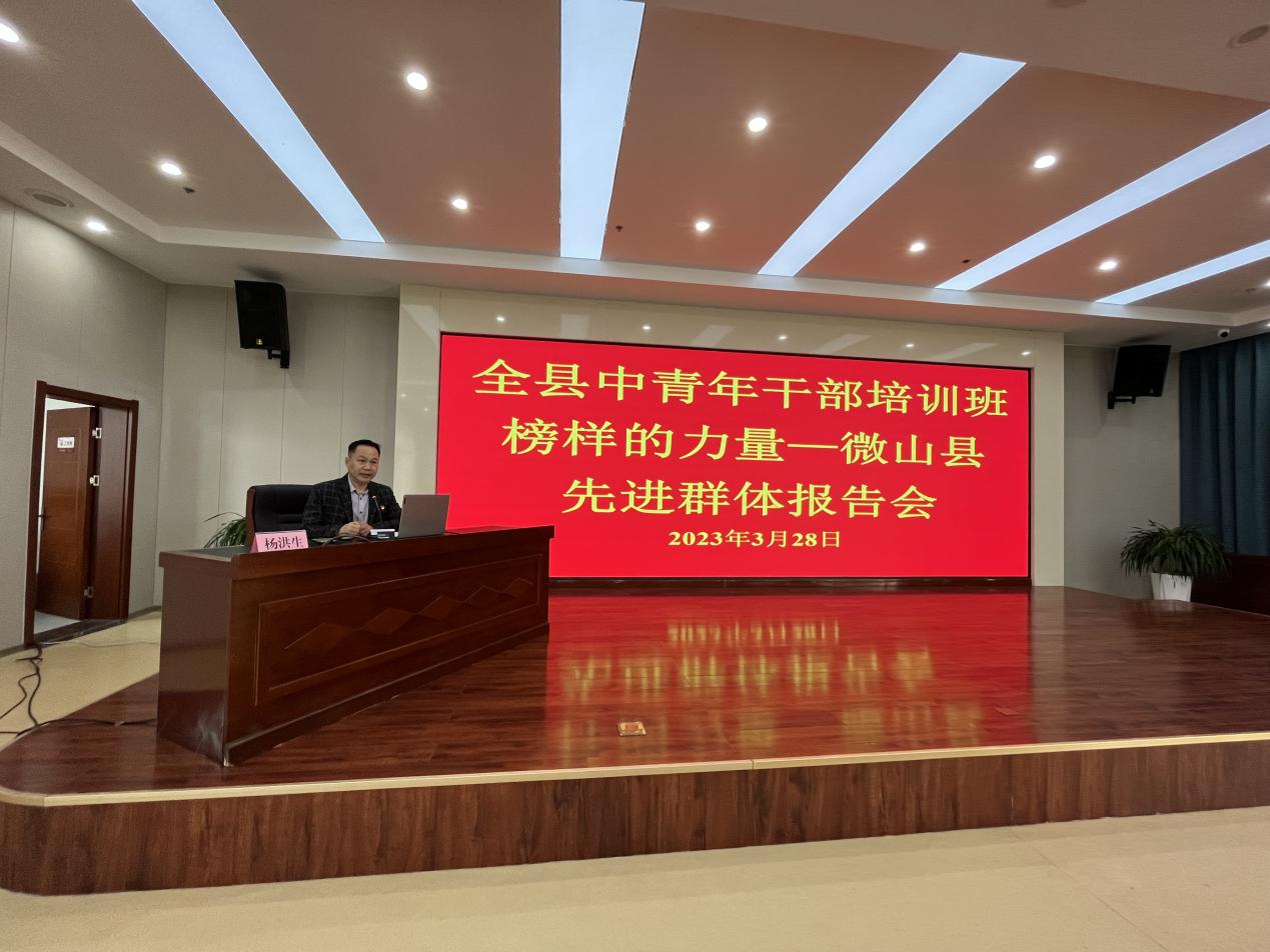应中共微山县委组织部下派办、微山县委党校邀请,3月28日下午三点。山东省文化和旅游旅游厅派驻微山岛镇“第一书记”工作队成员杨洪生书记到微山岛党员培训干部基地,为全县中青年干部培训班做题为‘榜样的力量’先进事迹报告。