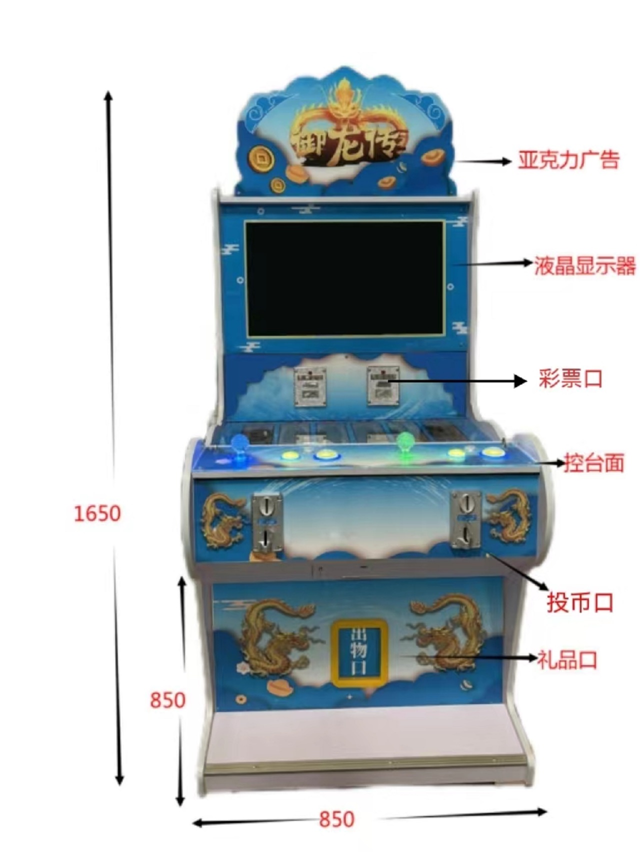 游戏内容简介 | 御龙传是以海洋生物为主题的游艺彩票礼品机,海底世界是一个色彩斑斓的世界,其中生长了多种类的珊瑚、海藻和鱼类,它们在奇特的海底建筑中自由自在地游弋。主题取材真实,场景贴近生活。浩瀚的大海炫彩的画面,丰富的海洋生物,配以内置四种游戏场景炫酷的画面和华丽的音乐,增加游戏体验感,收获奖励的同时也能认识到更多的海洋生物。游戏场景深邃,在探索海洋的奥秘时,挑战玩家捕捉技术极限。主要游戏内容为游戏开始后体验者可操作摇杆和按键射击场景内的各种生物,还可在捕捉物种的同时,获得奖励。将体验者与游戏融为一体。设备礼品不得销售香烟,并在设备显著位置张贴不得销售香烟提示。兑换礼品应来源合法,内容健康,安全无害。设备礼品为小毛绒娃娃、泥塑盲盒。 | |||