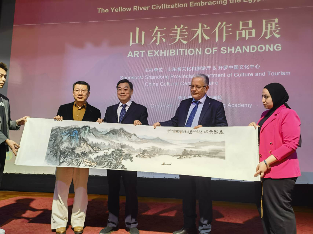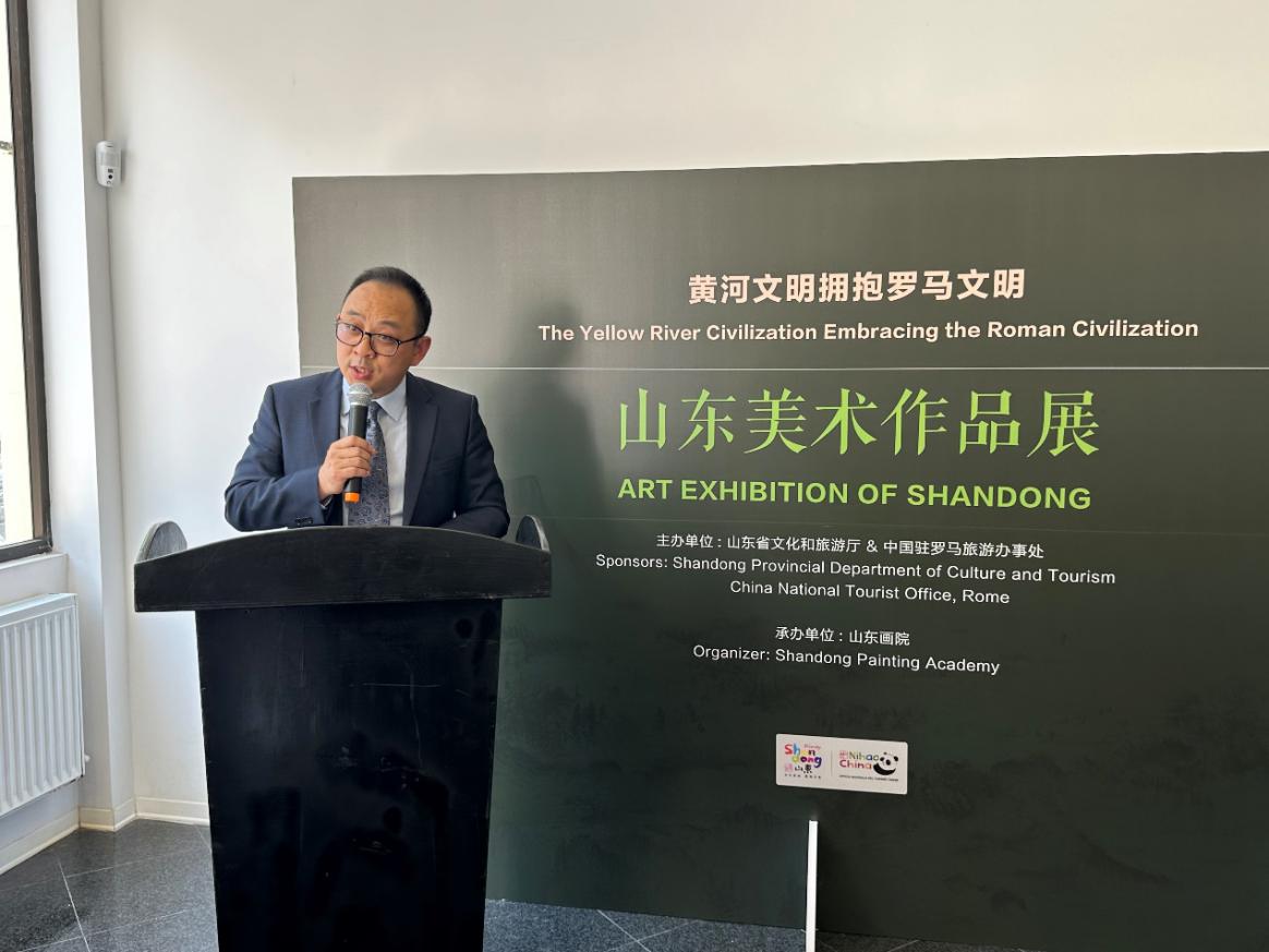 为配合国家外交大局,传承弘扬黄河文化,打造高水平对外开放新高地,促进我省与意大利、罗马尼亚、埃及文旅交流合作,5月8日至17日,在山东省人大常委会副主任、党组书记杨东奇的率领下,省文化和旅游厅组派山东文旅代表团赴三国开展文化交流,举办“黄河文明拥抱罗马文明”、“黄河文明拥抱罗马尼亚文明”、“黄河文明拥抱埃及文明”3场山东美术作品展,推介我省文旅资源,展现山东艺术魅力,推动与各方友好交流合作取得新进展。