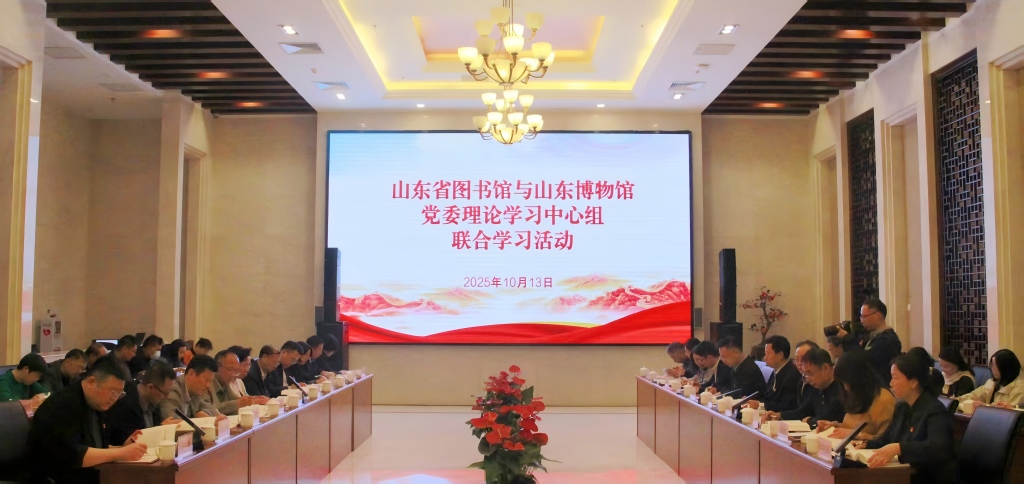 10月13日,山东省图书馆党委和山东博物馆党委开展理论学习中心组联学活动,认真学习《习近平谈治国理政》第五卷,用习近平新时代中国特色社会主义思想引领新征程,从党的创新理论中找理念、找思路、找方法。