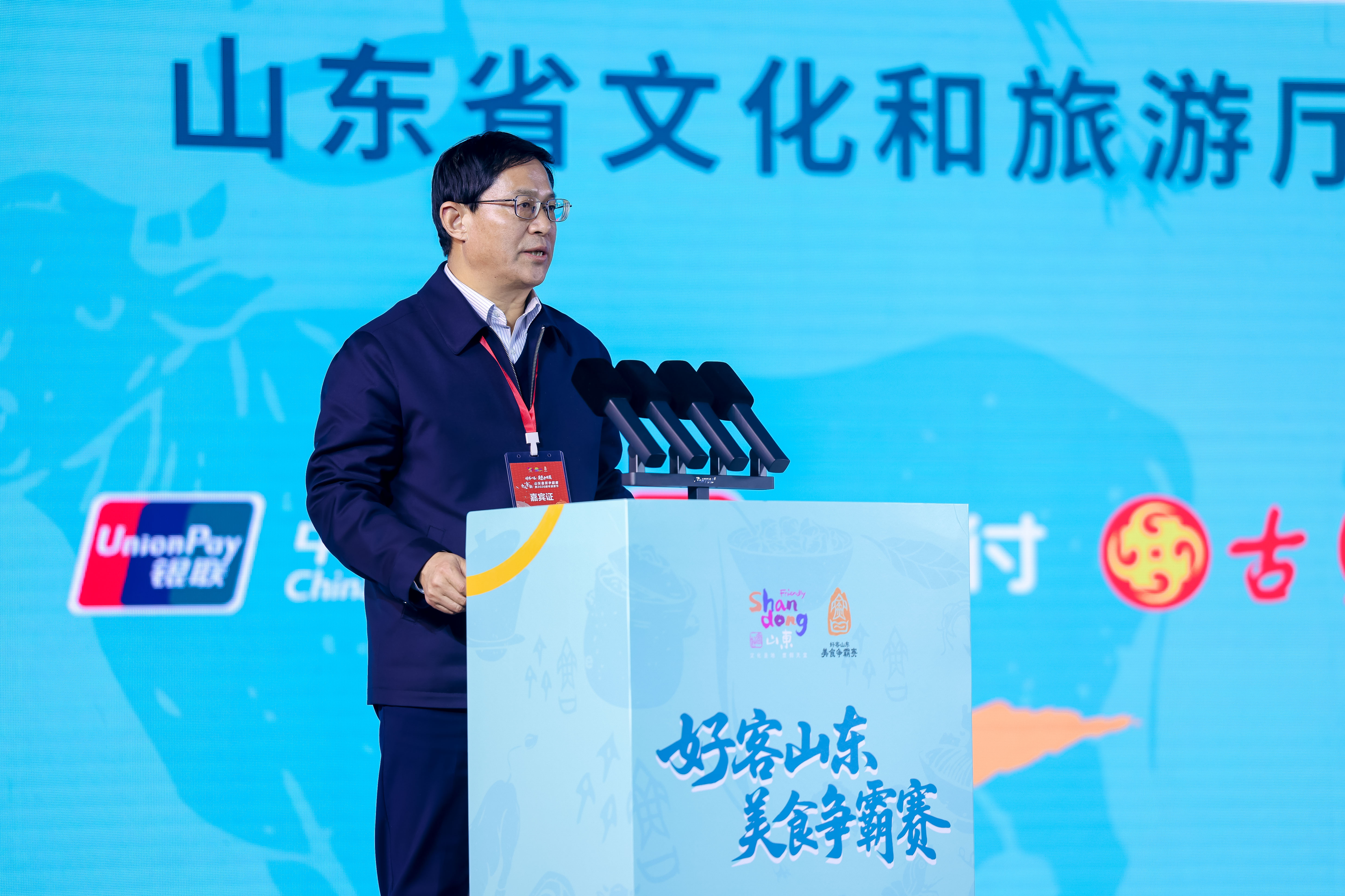按:2025年12月28日,由山东省文化和旅游厅、山东省商务厅、山东省市场监督管理局、山东省农业农村厅、中央广播电视总台山东总站、大众报业集团、山东广播电视台指导,山东省精品旅游促进会主办的2025“好客山东·美食争霸赛”在青岛圆满收官。从盛夏泉城鸣锣启幕,到寒冬海滨礼赞落幕,150余天的激情接力,不仅烹调出一场全民共享的味觉狂欢,更交出了一份山东文商旅深度融合的年度亮眼答卷。现将在闭幕式上山东省文化和旅游厅党组成员、副厅长王炳春的讲话,摘录如下: