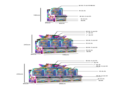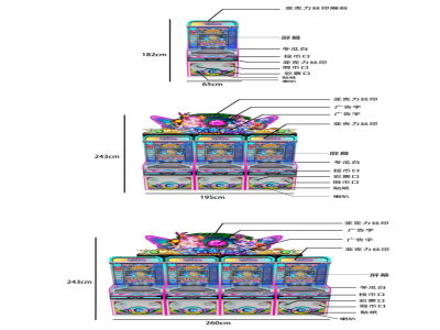 机型机种 | 游艺娱乐设备 | 设备尺寸 | 65*89*182、195*89*243、260*89*243 |