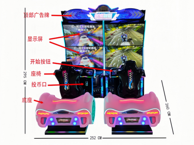 游戏内容简介 | 《极速超越》作为一款全新动感赛车游艺机,外观造型新颖独特,搭配具有闪动、变色效果的灯光元素,整体炫酷感十足,一眼便能抓住玩家目光。设备内置摄像头,可实时捕捉玩家动态并拍摄相片,增添互动趣味。更值得一提的是,它配备了车体震动功能,能根据游戏内 5 条不同赛道的路况,产生相应的动态震动效果,让玩家在操控时感受真实的路面反馈。同时,玩家可使用氮气加速功能,让赛车操作更灵活,体验风驰电掣的快感。 游戏通过显示器展现丰富内容,将用户的视觉与听觉巧妙联动,营造出逼真的虚拟视界。系统采用的触点控制识别器,能让参与者无延迟地下达操作命令,最大程度模拟真实驾驶环境,实现替代真实场景的理想模型,让玩家完全沉浸其中,仿佛置身于虚拟赛车世界,尽享身临其境的游戏体验。游戏虽能体验速度与激情,但务必遵守交通规则;小朋友体验时,需在家长全程陪同下安全操作,享受欢乐的同时守护安全。 | ||