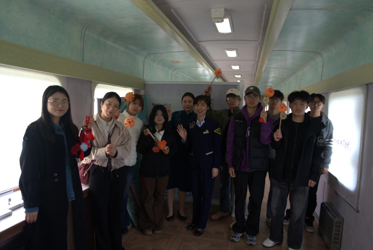 此外,首次参与列车教学的同学们热情不减,纷纷在车厢内打卡集章、选购文创产品,实时分享研学见闻。数字媒体、融媒体技术与运营专业的学生则同步开展影像拍摄,将实践过程转化为专业实训内容。